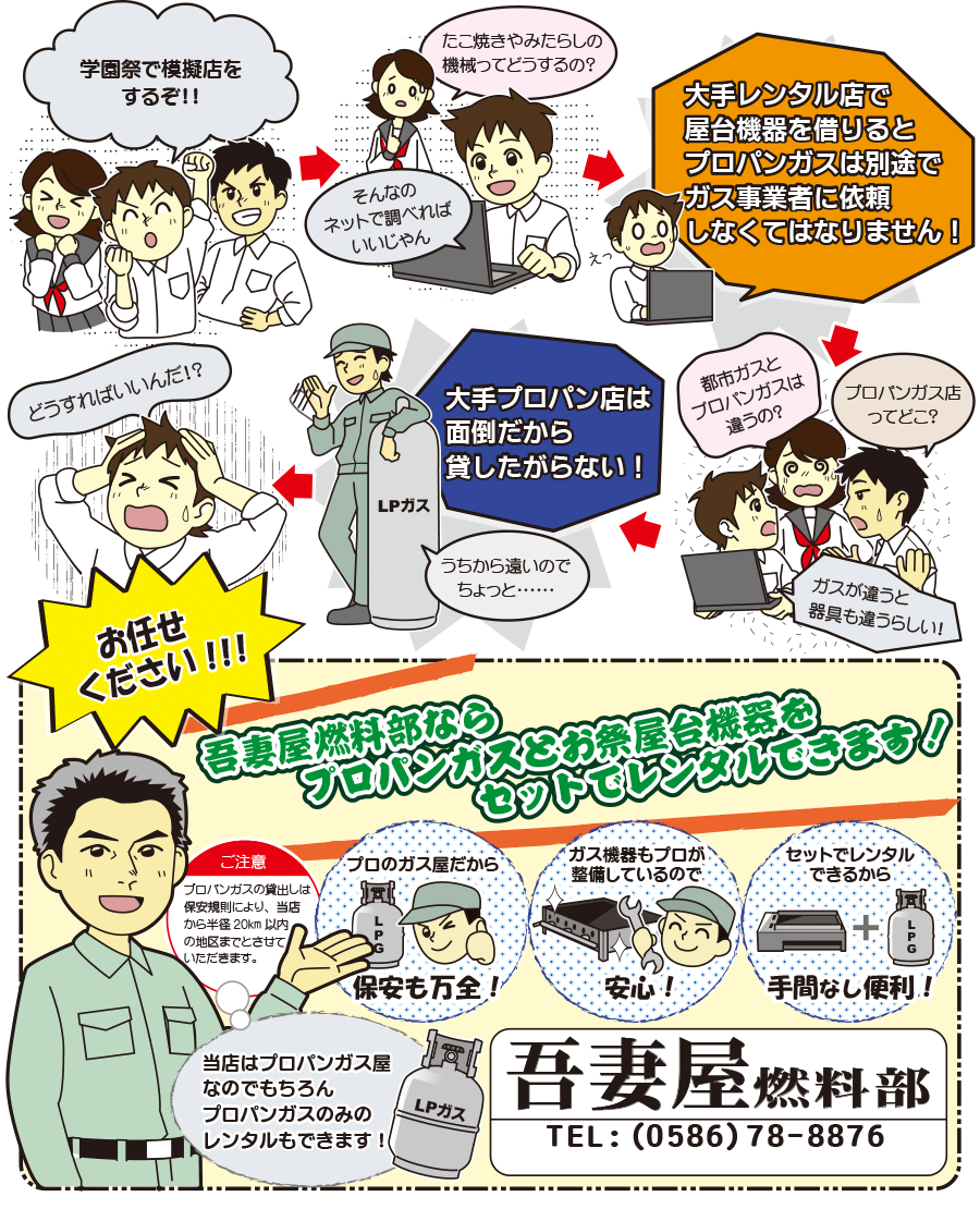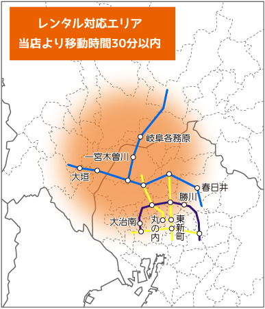 ◎保安規則により、貸し出しは当店から移動時間30分以内の地区(高速道路使用可)までとさせていただきます。